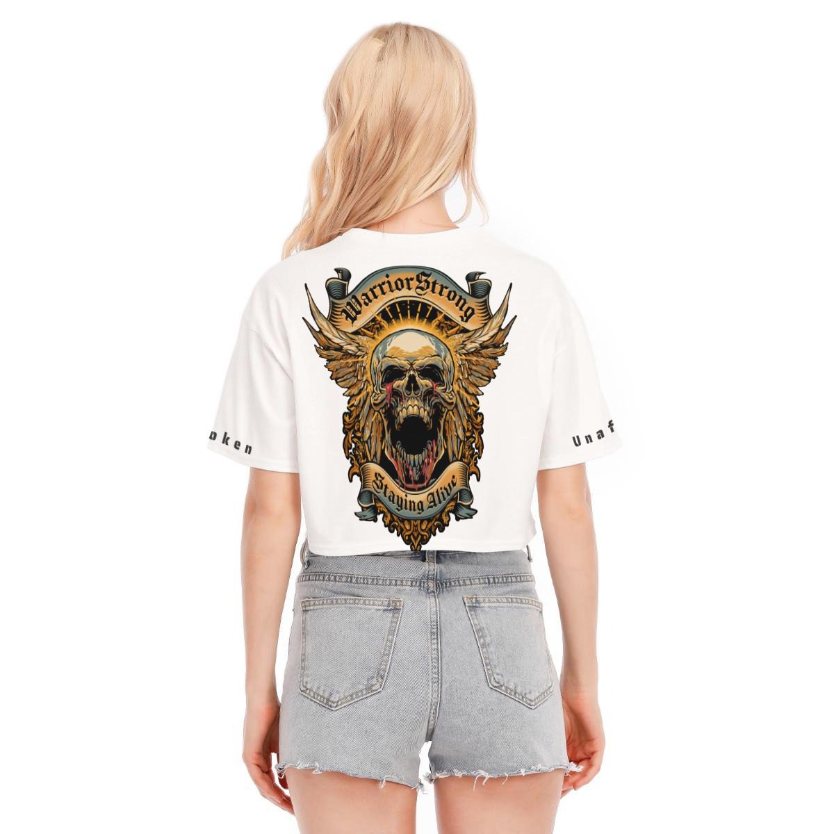 Graphic on Back: Tattoo-style StayingAlive Skull