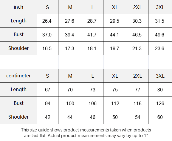 | Centimeter | S | M | L | XL | 2XL | 3XL |